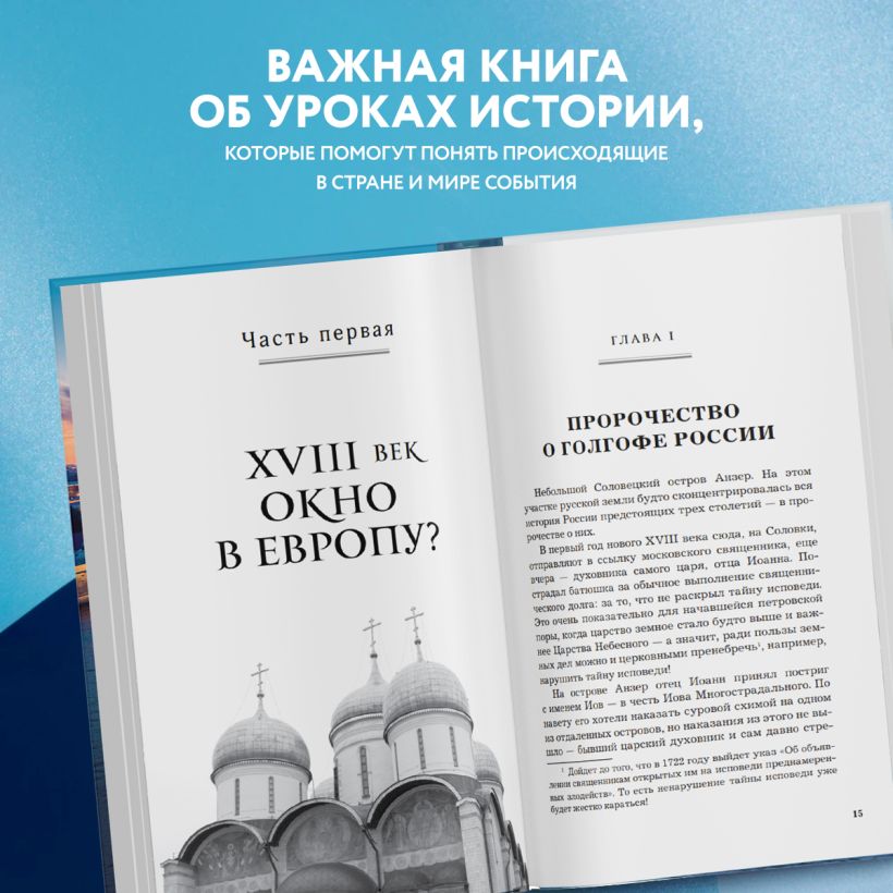 С библейской закономерностью в каждом эпизоде тысячелетней русской хроники отражалось главное правило, завещанное нам Самим Христом: «Ищите прежде Царствия Божия и правды Его, и это все приложится вам» (Мф 6:33). Эти слова — главная тема новой книги Бориса Корчевникова — известного телеведущего и генерального директора телеканала «Спас». В ней отражены важные вехи российской истории, преломленные через глубокие вопросы веры и учение святых отцов церкви. Как Россия обретала, теряла и снова находила свой истинный Путь. Как откликалась на вызовы Запада и Востока и строила свою уникальную историю.