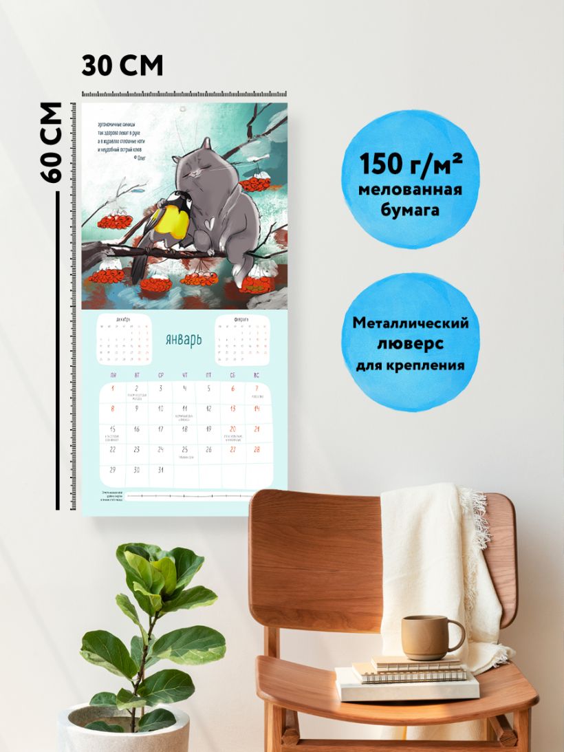 Наши настенные календари отличаются высоким качеством исполнения! Тщательно подобранные иллюстрации, напечатанные на глянцевой бумаге высочайшего качества, станут настоящим украшением дома, а в календарной сетке найдется место для ваших планов: большие клетки позволят делать записи и организовать свой год!