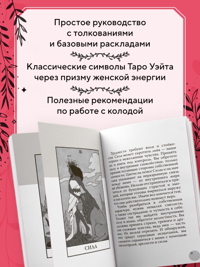 В Таро только девушки! Легендарная колода Лизы Стерл о женской красоте и силе, вдохновленная современной модой и ведьмами со всего мира. «Таро современной ведьмы» — это свежий взгляд на традиционный символизм Таро: в этой колоде вас ждут привычные сюжеты Таро Артура Эдварда Уэйта, героинями которых стали девушки и женщины разных рас, возрастов и типов внешности и профессий… ваши близкие, подруги, коллеги, звезды и просто случайные прохожие. Ученые, художницы, воительницы и, конечно, ведьмы! Эти карты несут предостережения, радостные вести и, самое главное, понимание того, что происходит внутри нас и вокруг.