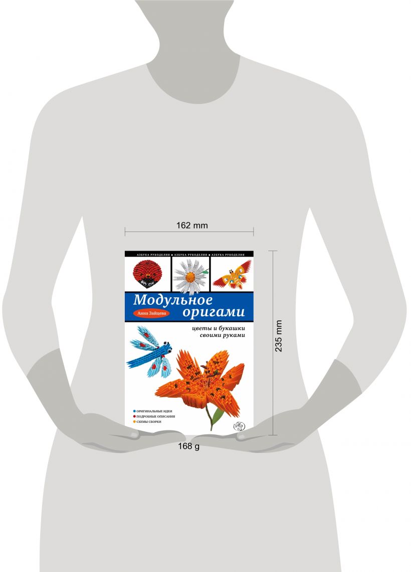 Предлагаем вашему вниманию книгу известного российского дизайнера, члена Международной ассоциации "Союз дизайнеров" Анны Зайцевой по созданию удивительно реалистичных цветов и забавных насекомых в технике модульного оригами – одной из самых популярных техник работы с бумагой! На ее страницах вы найдете всю необходимую информацию о материалах и инструментах, способах изготовления модулей и складывания их между собой всевозможными способами для достижения невероятного результата. Благодаря подробным описаниям выполнения поделок, ярким пошаговым фотографиям и детальным схемам сборки вы с легкостью сможете создать очаровательную ромашку, лилию, георгину, колокольчик, различных бабочек, стрекозу, божью коровку, которые еще долго будут радовать всю семью!
