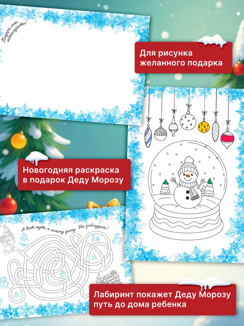 Новогодний набор для творчества «Моё первое письмо Деду Морозу» создан для детей 7 – 8 – 9 лет, которые готовятся к зимнему празднику. В набор входит красочный конверт с изображением Деда Мороза, лист с макетом письма Деду Морозу для заполнения – с пунктирными прописными буквами и свободными полями для собственного текста, а на обратной стороне раскраска с новогодним рисунком, который станет подарком Деду Морозу. Картонная перегородка внутри позволяет сохранить письмо с конвертом в идеальном состоянии. Ещё один лист содержит развивающие задания: лабиринт и свободное место, где ребёнку нужно нарисовать желаемый подарок. Этот подарочный набор для детей помогает развивать навыки письма, творческое мышление и внимание через игру. Комплект станет отличным выбором как подарок сыну, дочке, племяннику или племяннице. Его можно также дарить одноклассникам, участникам школьного утренника. Этот недорогой и простой, но замечательный подарок гарантированно наполнит теплом и радостью атмосферу подготовки к Новому году дома или в школе.