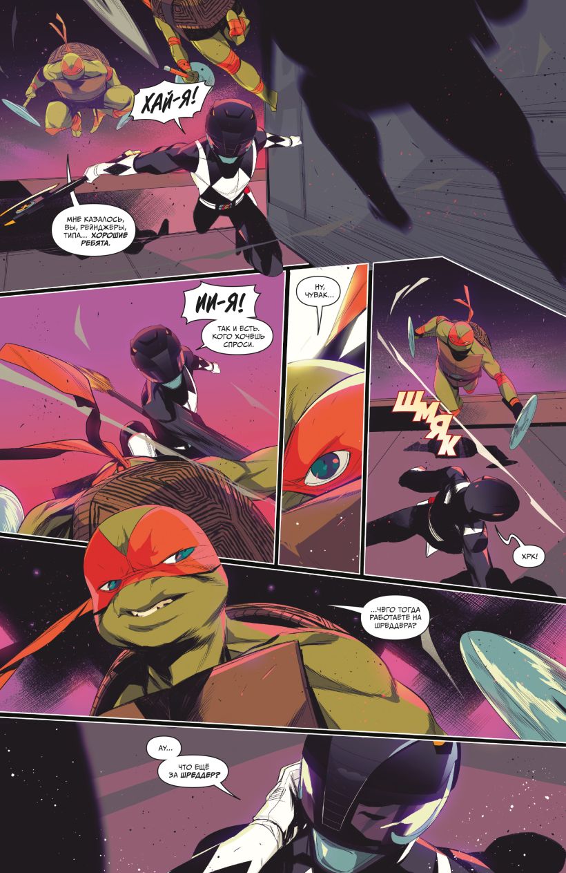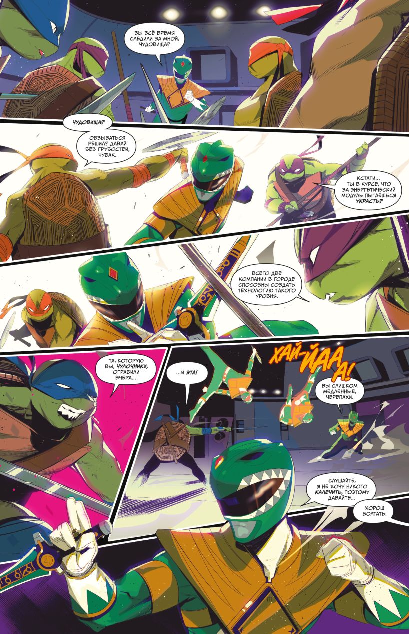 В этом комиксе, написанном Райаном Пэрроттом (Power Rangers: Necessary Evil) и нарисованном Симоне ди Мео (Power Rangers: Beyond the Grid), Могучие Рейнджеры впервые сражаются — и, возможно, объединяются — с Ниндзя Черепашками.