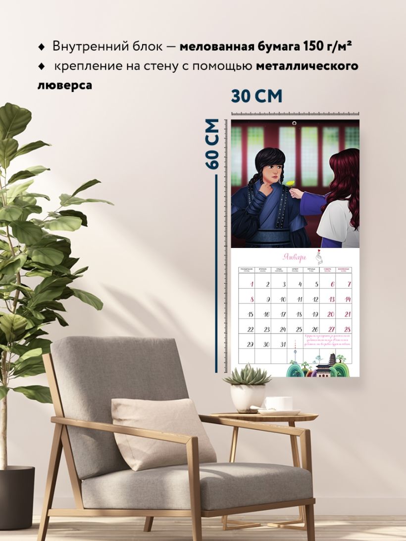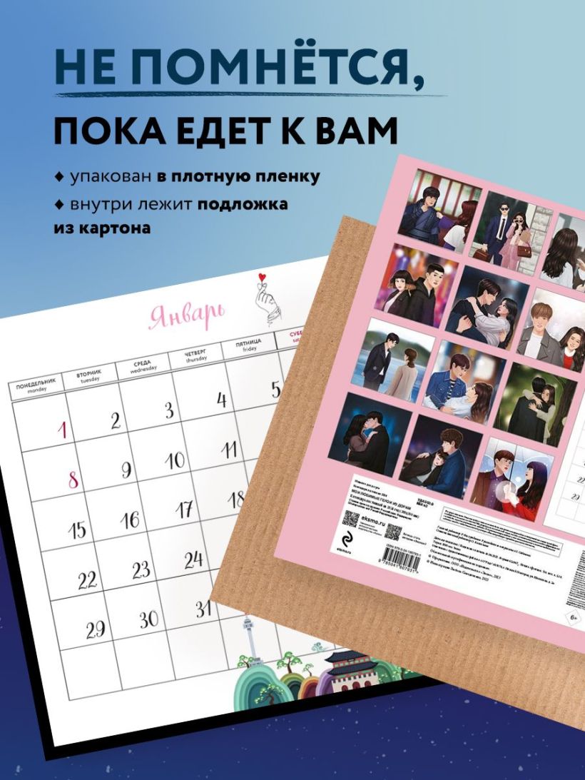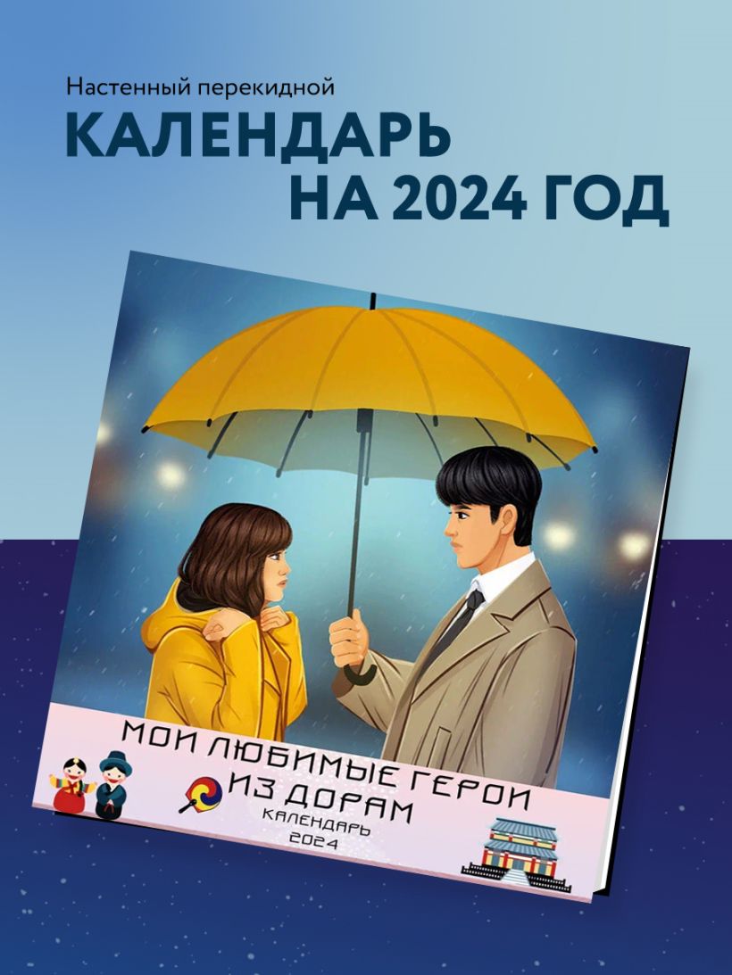 Идеальный календарь для настоящих поклонников дорам! Качественная бумага, большой формат (300х300 мм) и креативная яркая сетка с любимыми героями дорам! Отличный подарок поклонникам!