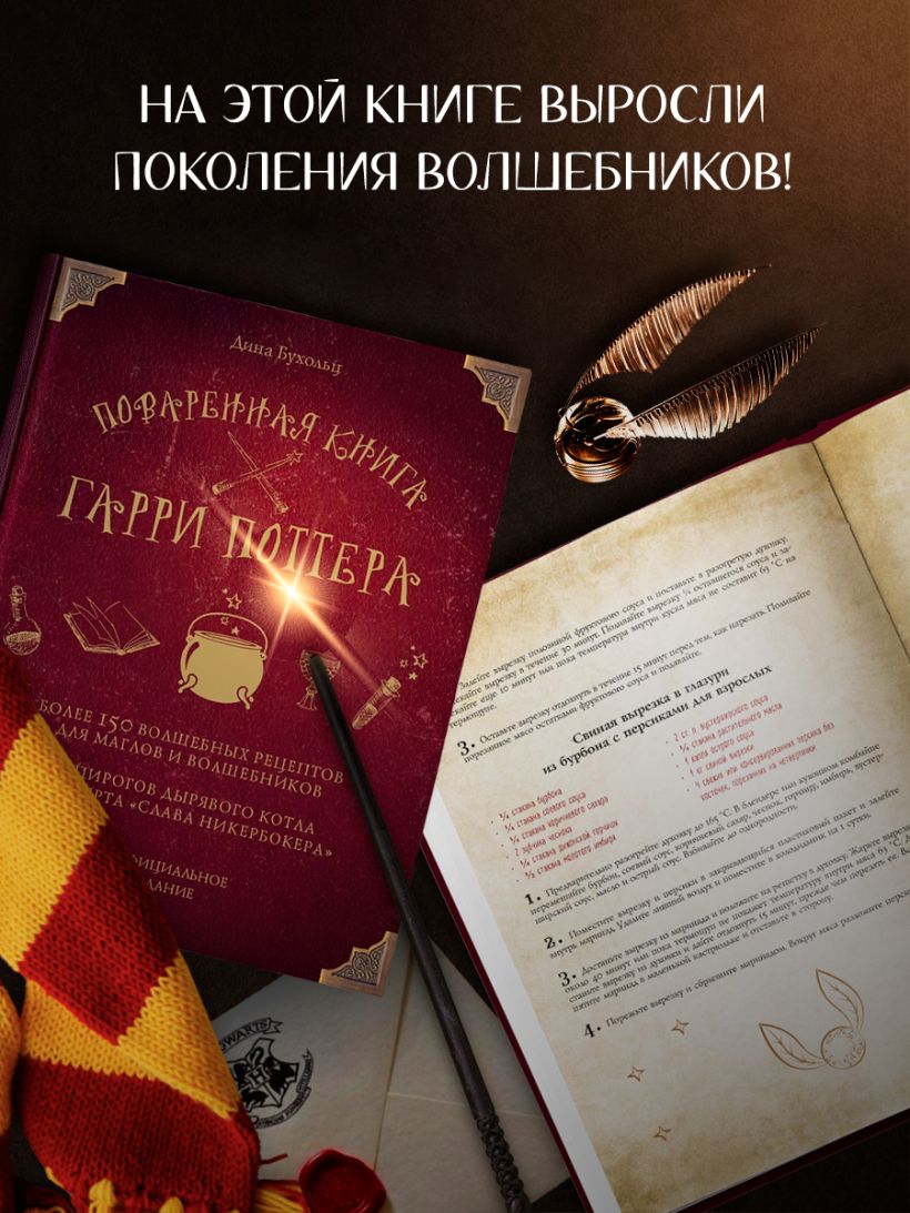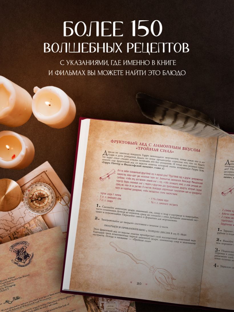 Более 150 рецептов, включая французский луковый суп от Кикимера, классический мясной пирог миссис Уизли, тыквенные пирожки из Хогвартс-экспресса и многое другое!