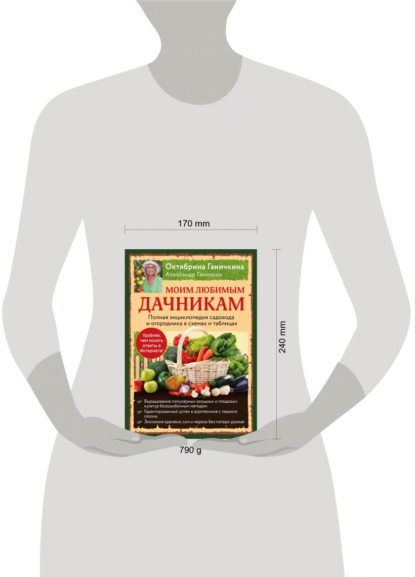 80 самых популярных культур, три основных раздела: плодовый сад и ягодники, овощи, препараты для защиты растений. Исчерпывающие рекомендации: какие сорта выбрать, как посадить, как ухаживать, чем подкормить, как защитить от болезней и вредителей и гарантированно получить богатый урожай с первого сезона. Октябрина Ганичкина — признанный эксперт в области дачного хозяйства, кандидат сельскохозяйственных наук, автор множества бестселлеров по выращиванию овощей, фруктов и ягод, самая популярная в России телеведущая программ по садоводству и огородничеству. Александр Ганичкин — дипломированный ученый-агроном.