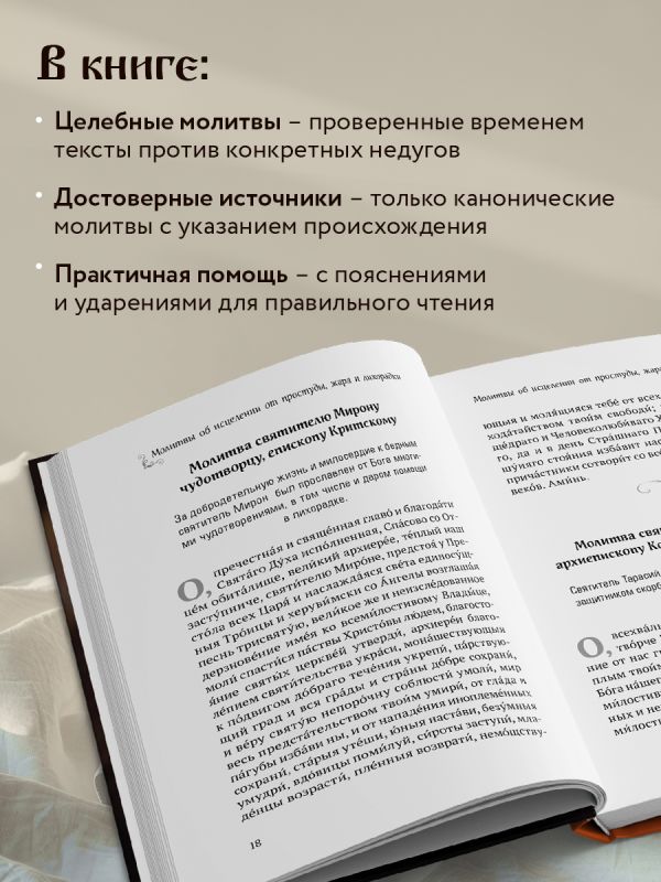 Уникальный сборник действенных молитв для избавления от болезней: простуды, жара, эпидемий и вирусов, от головной и зубной боли, болезней сердца, внутренних органов, глаз, рук и ног, от алкоголизма, пьянства и множества других недугов. К молитвам добавлены пояснения и ударения, все молитвы имеют авторитетные источники. Этот сборник избранных молитв для здоровья и исцеления будет полезен каждой семье. Прекрасный подарок верующему православному христианину.