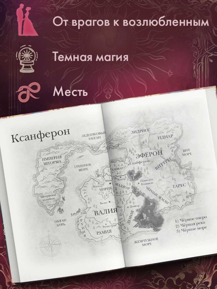 Потрясающее оформление: на форзацах вы найдете цветные иллюстрации главных персонажей, внутри — подробную карту, глоссарий и невероятно интересный авторский мир, уникальный и неповторимый!