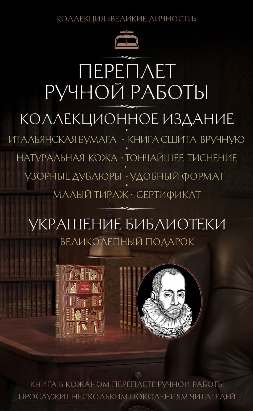 Коллекционное издание в серии «Великие личности», включающей в себя 21 том знаменитых сочинений крупнейших философов, ученых, писателей и военачальников прошлых веков и нового времени в популярном изложении. Издание в переплёте ручной работы отпечатано на бумаге премиум-класса цвета чайной розы и сшито вручную. Заявленный тираж 2020 года - 15 нумерованных экземпляров. В каждом экземпляре - избранные цитаты и гравированный портрет автора, отпечатанные на дизайнерской бумаге, изготовленной на четверть из натуральной кожи. Переплеты созданы по традиционной для 19 века технологии из гладкой натуральной кожи и украшены тремя видами рельефного тиснения - золотым. рельефным и красочным. Форзацы книги из дизайнерской тонированной бумаги и тиснёные золотом орнаментальные дублюры. Каптал и ляссе из шелка и трехсторонний торшонированный обрез.