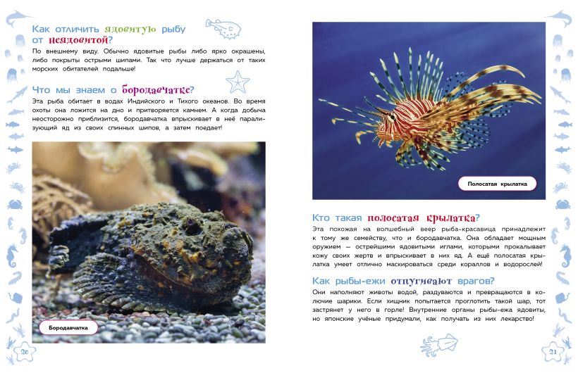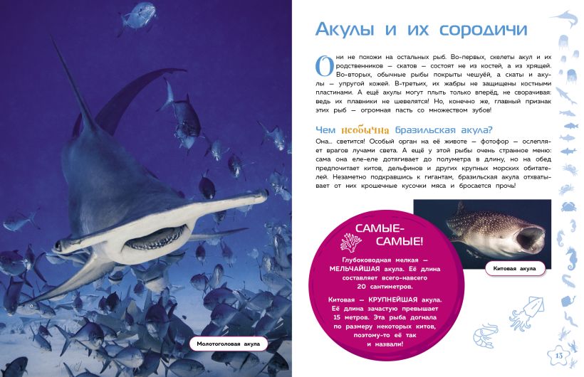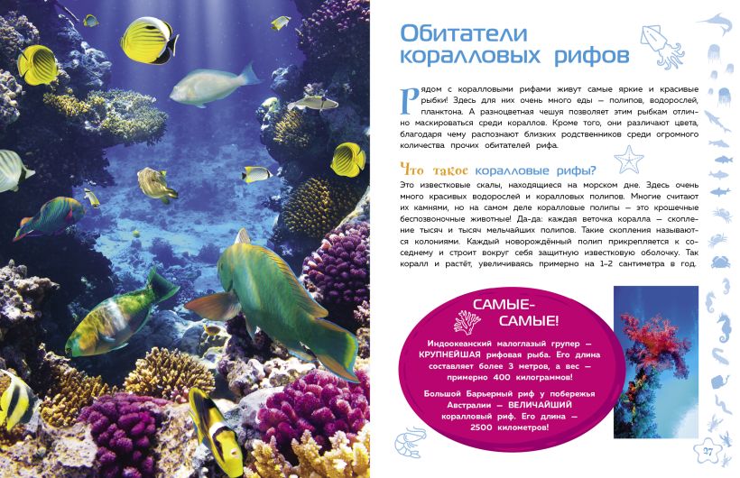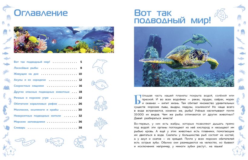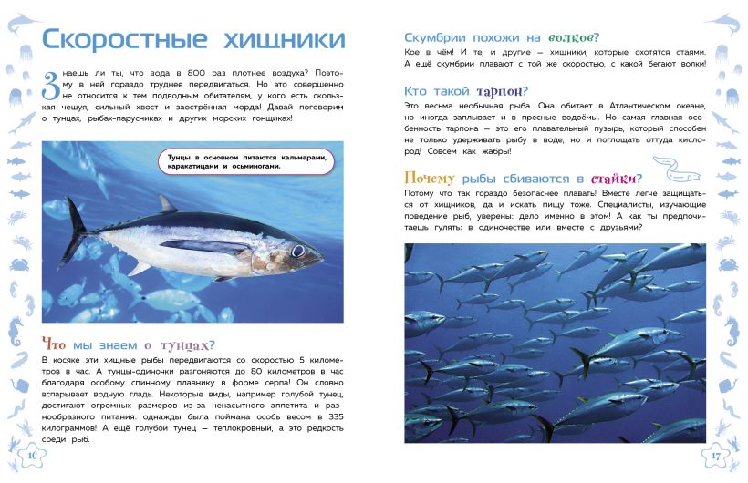 Внимание! Если ты хочешь узнать всё самое захватывающее о морских животных, то скорее открывай эту книгу! Будет интересно! Ты прочитаешь о том, где пасутся морские коньки, почему рыбы сбиваются в стайки, зачем скатам электричество и сколько зубов у акул. А ещё тебя ждут большие, яркие и красочные фотографии. Добро пожаловать в мир животных!