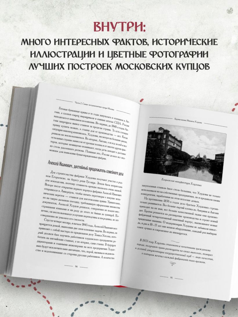 Откройте страницы этой замечательной книги, чтобы погрузиться в увлекательное путешествие по истории Москвы среди богато украшенных домов, величественных и диковинных, и купеческих династий, чьи фамилии стоят за ними. Узнайте, какие тайны и секреты скрываются за фасадами старинных зданий, которые до сих пор украшают столицу.