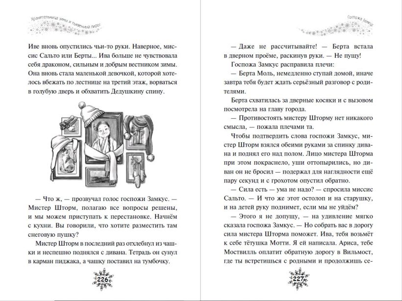 Ива не любит зиму. Глубокие сугробы, колючие свитера и метели. Вот только она — проводница зимы. И лишь от Ивы зависит, пойдёт ли в городке Моствилль первый снег. Но когда приходит пора будить духа зимы, на пороге Лоскутного дома появляется незнакомка Ариса. Девочка уверена, что на самом деле проводницей должна стать она. Ива и слышать этого не хочет! Но получится ли у неё в одиночку принести в городок первый снег?