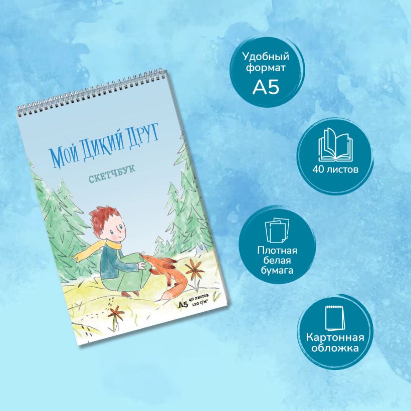 Теплый и уютный скетчбук для детей и взрослых с героями кинофильма «Мой дикий друг».