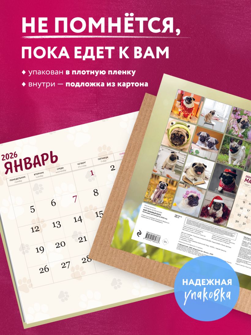 Очаровательный календарь для тех, кто без ума от мопсов! Порадуй себя или близкого, чтобы каждый день начинался со взгляда на милую собачку! Удобные настенные календари станут отличным поводом улыбнуться с утра! Эксклюзивные иллюстрации, качественное полиграфическое исполнение, удобный формат (300х300 мм) — все это будет дарить вам такие незабываемые эмоции каждый день, что вы не заметите, как пролетит целый год!