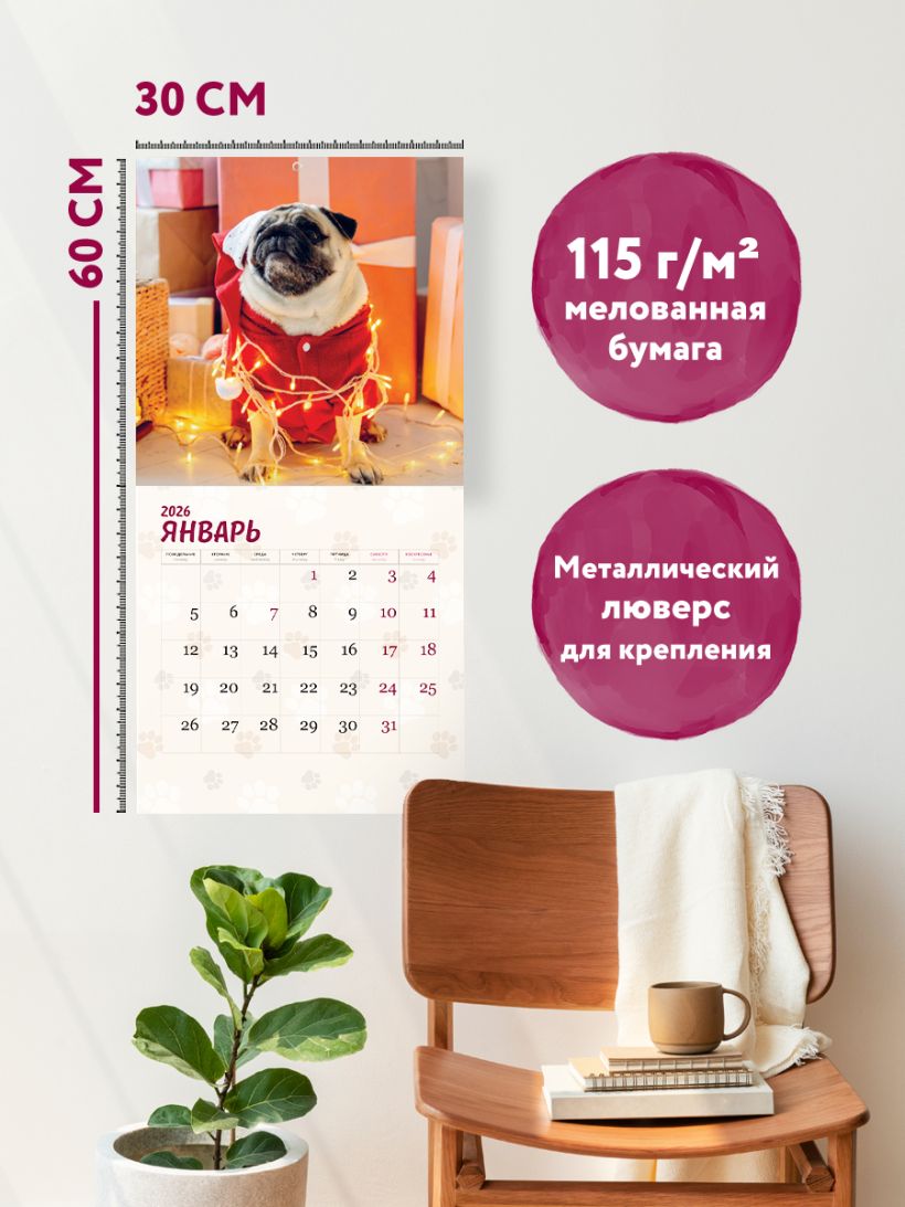 Мой любимый мопс. Календарь настенный на 2026 год (300х300 мм)