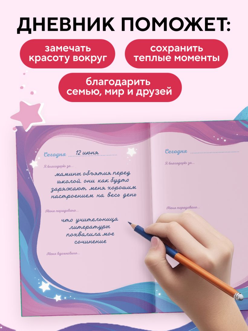 Этот дневник — как сундук с сокровищами, где ты будешь собирать светлые моменты своей жизни. Каждый день — новая страничка для благодарности: себе, миру, друзьям и даже пушистому коту!