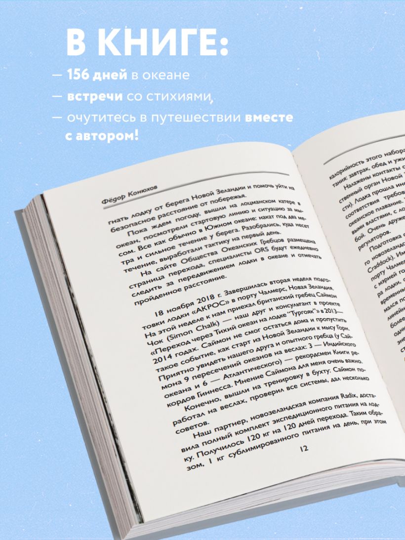 Эта книга — путевые заметки Фёдора Конюхова, которые он делал на первом этапе своего кругосветного плавания — от Новой Зеландии до мыса Горн в Чили. Впервые в истории Фёдор Конюхов пересек Южный океан и обогнул мыс Горн на вёслах. 156 дней один в океане, наедине со стихией и самим собой.