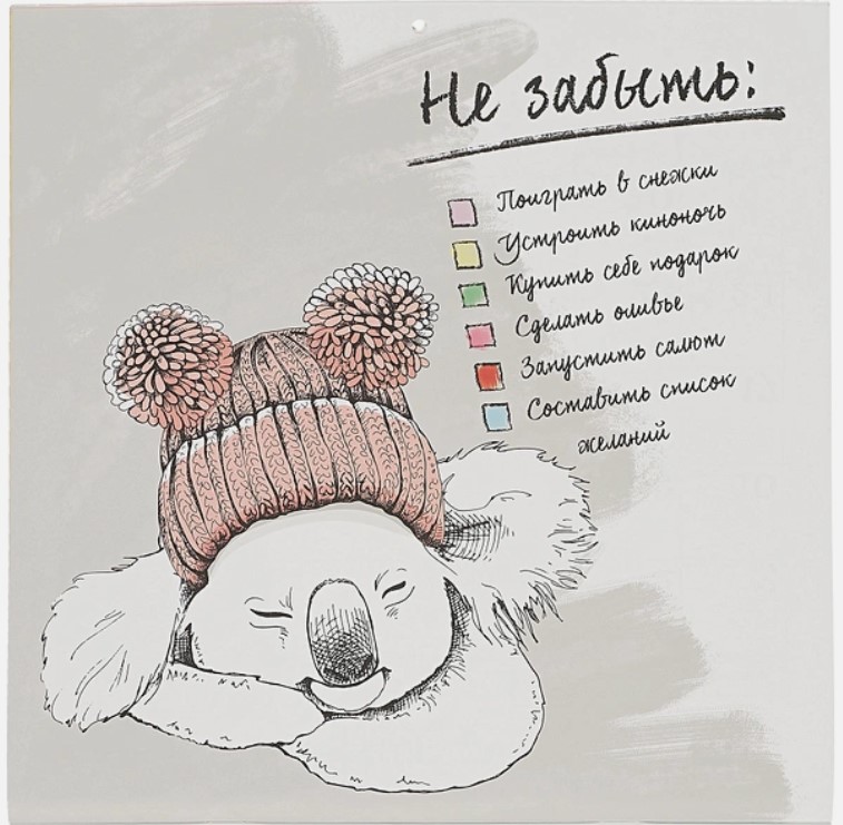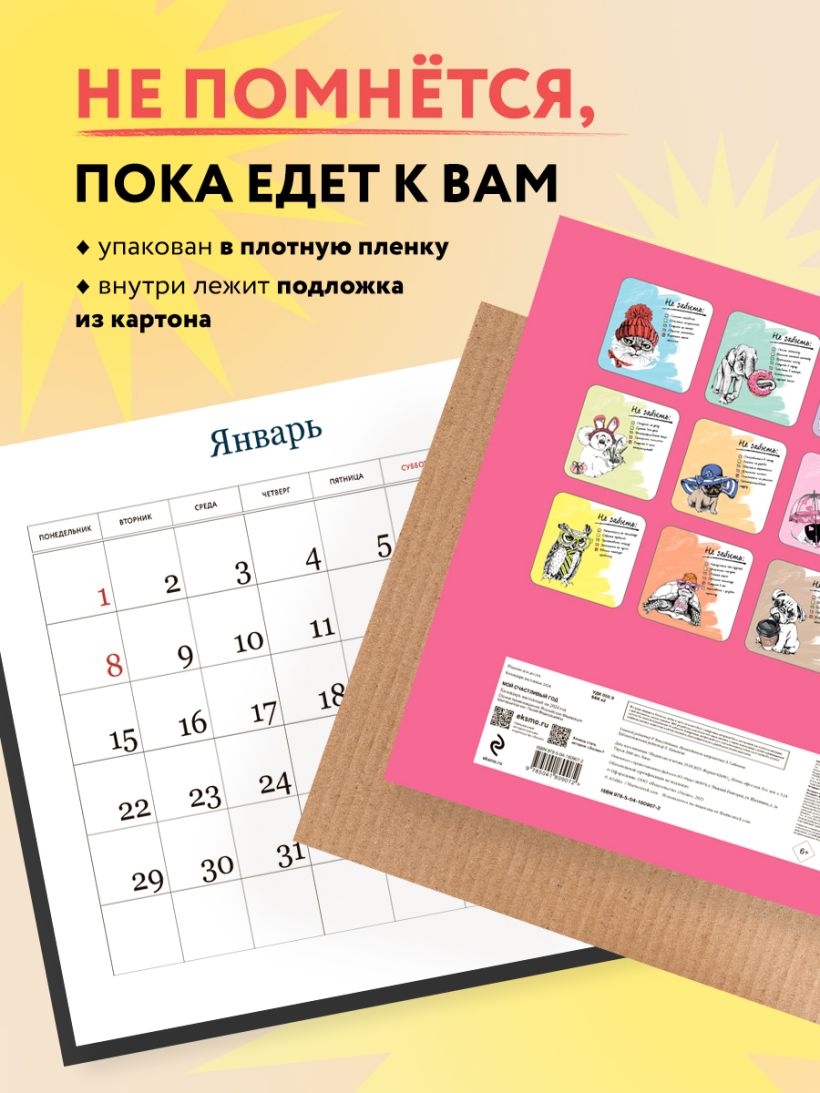 Красочный календарь с забавными зверями точно поднимет настроение! А список активностей на каждый месяц поможет раскрасить серые будни и создать множество новых воспоминаний. Проведите год ярко и незабываемо, пусть он останется в памяти как чудесный и насыщенный радостью! Качественная печать и красочный дизайн также будут радовать каждый день и станут прекрасным украшением любого интерьера.