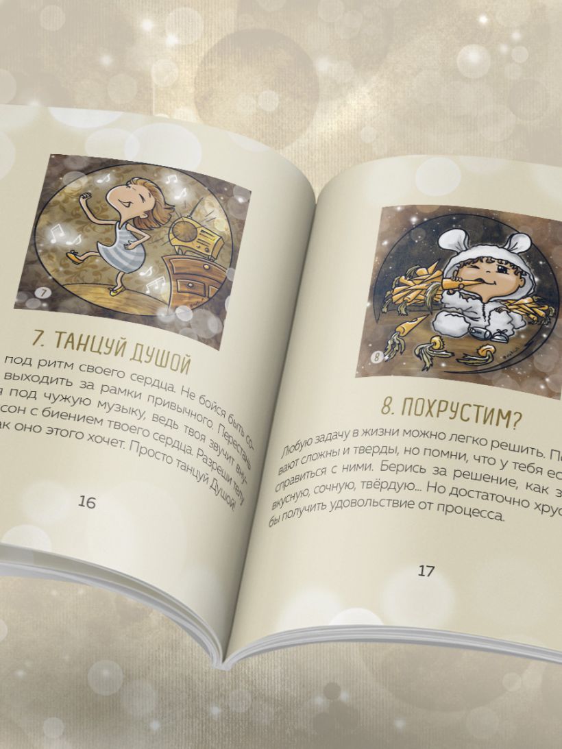 • 52 вдохновляющие карты с теплыми душевными иллюстрациями.