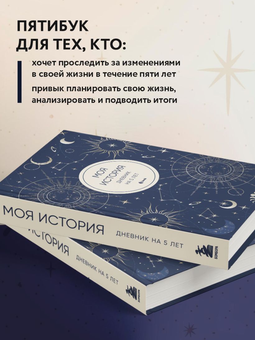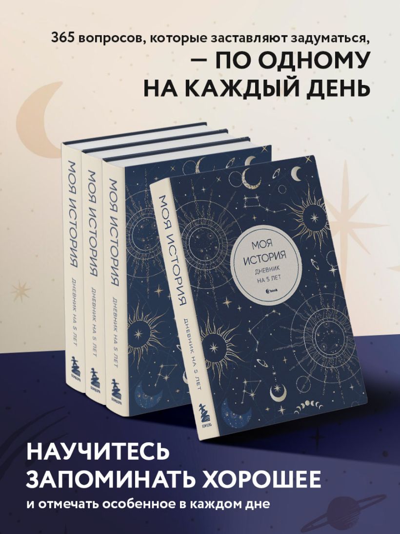 Обновленная линейка классических пятибуков — дневников на 5 лет! Новые форматы и вопросы для самопознания. Более 80 000 проданных экземпляров. Расскажите историю своей яркой жизни. Каждый день вас ждет вопрос, который поможет отвлечься от будничной суеты или разобраться с собственными мыслями. Открывайте, рискуйте, чувствуйте и записывайте! Пятибук станет отличным подарком для себя или близких. Небольшой формат мини-книжки удобно носить с собой или убирать в укромное место. Вы сможете: - фиксировать самое важное, затрачивая 5 минут в день; - лучше понимать себя с помощью вопросов для самоанализа; - видеть, что происходило с вами ровно 1, 2, 3, 4 года назад; - следить, как меняетесь вы и то, что вас окружает. Дневник не привязан к конкретному году и дню недели — начинайте в любой день. Просто найдите сегодняшнее число, укажите год и каждый день заполняйте всего по 3—4 строчки, а когда год закончится, продолжайте вести дневник с первого листа. Таким образом, вы отвечаете на одни и те же вопросы в разные годы и наблюдаете, как меняется ваша жизнь и мысли. Ваше приключение начинается прямо сейчас!