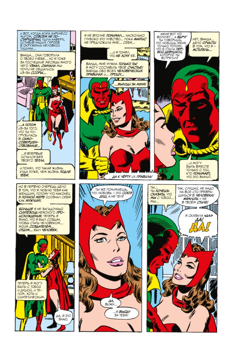 Обычно браки заключаются на небесах, но в их случае вместо небес оказался Лимб! А за сохранение искры в этих отношениях отвечал хэллоуинский ужас! В качестве свидетелей — Мстители и нелюди! Счастью молодых угрожают Дормамму и Мрачный Жнец! Вместо подарков — разгадка тайны времён Золотого века! Вижн наводит мосты с братьями... пусть и не по крови! А Алой Ведьме предстоит узнать, кто же на самом деле её отец! Самая странная парочка Marvel доказывает, что любовь супергеройству не помеха!