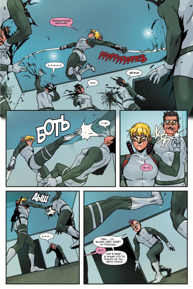 И хочется верить, что им под силу спасти мир, ведь на него вот-вот обрушатся вампиры, женщины ростом с небоскрёб, местные Повелители Зла и целый косяк сухопутных акул. Держись, Калифорния! Бонус: без преувеличения классическая история о Хоукаях и грандиозный дебют Гвенпул!
