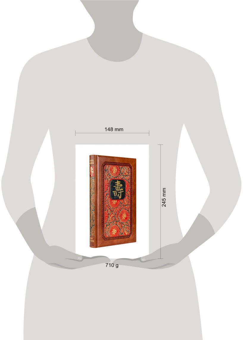 Подарочное издание в коллекционном инкрустированном переплете ручной работы. Книга отпечатана на бумаге премиум-класса. Тиснение многоуровневое рельефное, золотое и натуральным пигментом. Кожа натуральная трех цветов, коричневая, алая и зеленая. Обрез торшонирован, окрашен и вызолочен вручную. На передней сторонке помещено изображение иероглифа «Долголетие». Переплет оформлен по авторским рисункам, выполненным специально для данного издания, в оформлении использованы орнаментальные мотивы, традиционные для культуры Средневекового Китая. Форзацы из фактурной бумаги, каптал и ляссе из шелка. К книге прилагается сертификат на бумаге сорта «верже», подтверждающий лимитированный тираж и качество переплета ручной работы. Книга в кожаном переплете ручной работы послужит нескольким поколениям читателей.