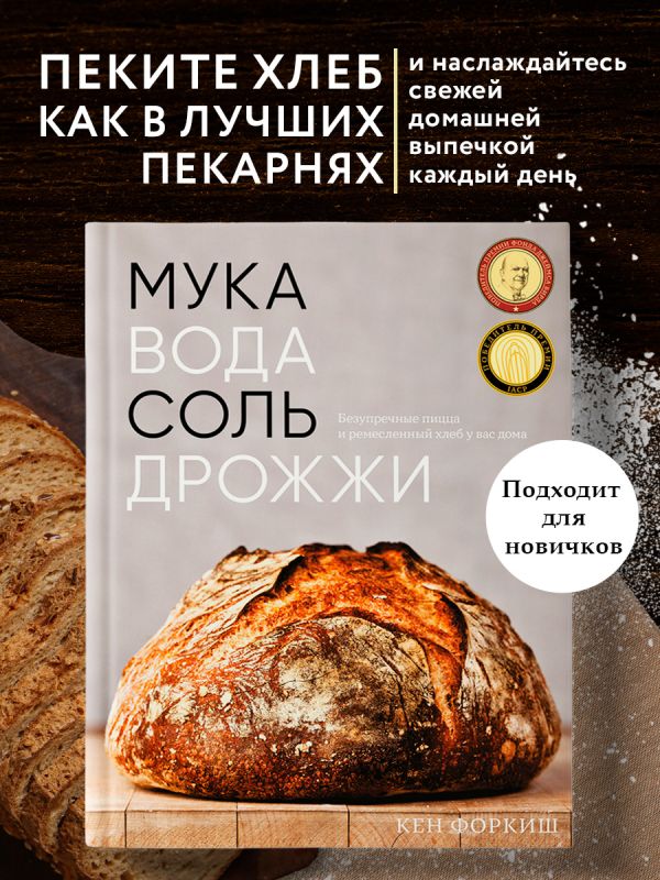 Но «Мука, вода, соль, дрожжи» — это не просто сборник рецептов, но настоящее учебное пособие по хлебопечению. Форкиш подробно, доступным языком расскажет об инвентаре и методиках, пекарских процентах и графиках выпекания. И, конечно, о секретах выведения закваски, которая превратит ваш хлеб в исключительный продукт.