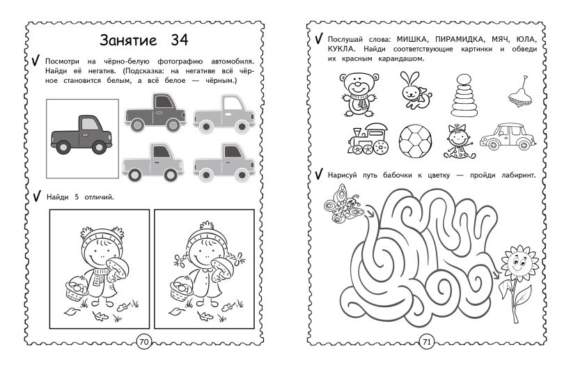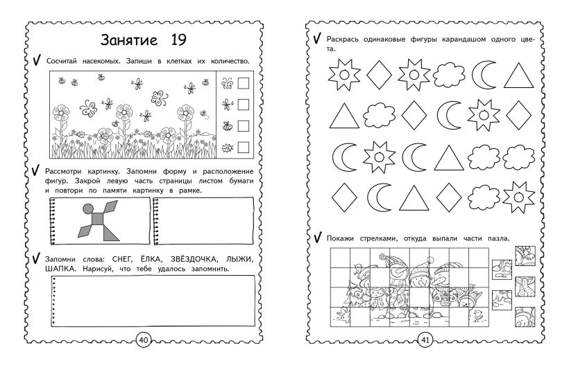 Обучающая книга для детей направлена на то, чтобы максимально развить память и внимание ребёнка и подготовить маленького непоседу к школе не столько через усвоение базовых знаний, сколько через развитие основных психических функций и познавательных способностей. Уникальная авторская методика, апробированная на практике, гарантирует высокий результат. Каждый разворот книги — отдельное занятие, рассчитанное на 15 минут и состоящее из занимательных заданий. Выполняя увлекательные задания, дошкольник будет вспоминать четверостишия, используя картинки и схемы, перерисовывать по клеткам, дорисовывать половинки, искать отличия, проходить лабиринты, объединять предметы в пары, искать лишнее и др. Представленные в книге развивающие задания помогут ребёнку в игровой форме усовершенствовать такие свойства внимания, как: устойчивость, сосредоточенность, переключаемость, распределение и объём, а также потренировать кратковременную и долговременную память.