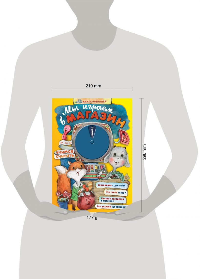 Книга-тренажёр! Книга-игра! Книга-магазин! Это первая развивающая, обучающая и развлекающая книга про магазин и счёт для самых маленьких. Книга-тренажёр познакомит ребёнка с устройством магазина, закрепит умение считать и подготовит к совершению первых самостоятельных покупок. Малыш узнает, что такое товар, деньги, цена, сдача, какие бывают магазины и как надо себя вести в них. В книге сразу две игры: Играем с подвижным модулем - считаем, сколько стоит покупка. Играем в магазин. Вы найдете в книге игрушечные деньги, кредитные карты, бейджи и ценники! Весёлое стихотворение на страницах книги написала замечательная поэтесса Эмма Мошковская.