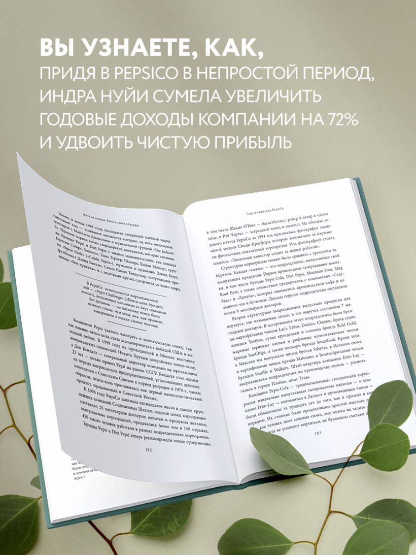 Книга предлагает взгляд изнутри на компанию PepsiCo и мышление Нуйи. Как ей удалось совершить радикальные изменения в продукции культового американского бренда, несмотря на сопротивление на каждом шагу? Почему так важно быть собой и доверять своим суждениям, если хочешь добиться успеха?