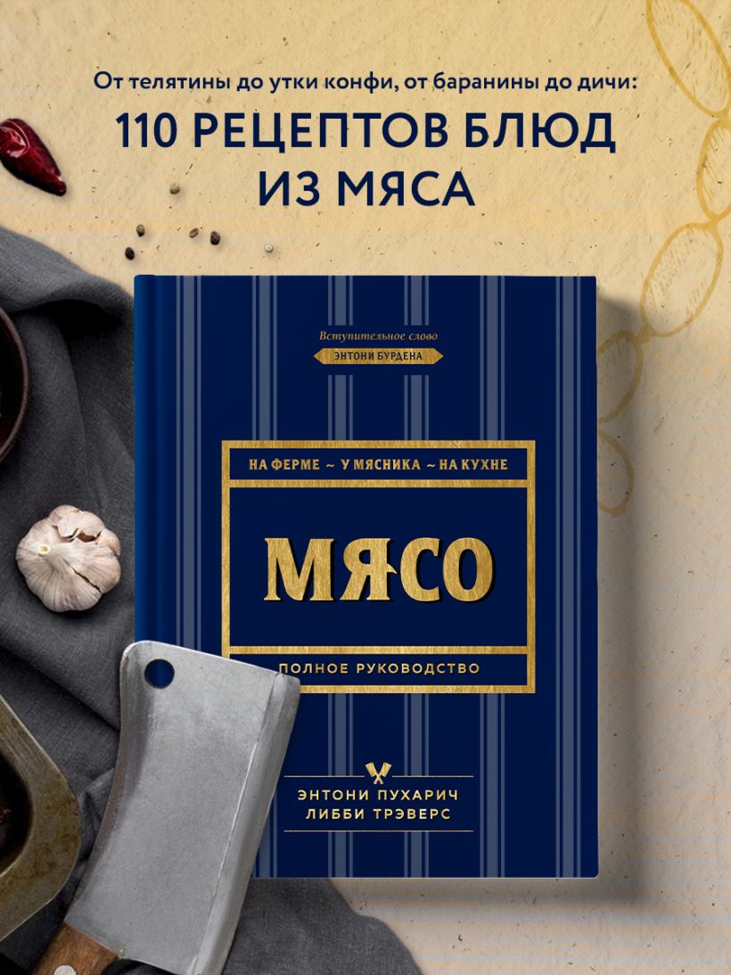 Книга легендарного австралийского мясника Энтони Пухарича, написанная в соавторстве с известным фуд-писателем Либби Трэверс, представляет собой исчерпывающее современное руководство на тему мяса. Домашняя птица, баранина, свинина, говядина, телятина, а также менее распространенные крольчатина, оленина, мясо кенгуру и пернатой дичи ─ в книге собрана актуальная информация об истории, видах и породах животных, о том, как их разводят и чем кормят, приводятся схемы разделки туш и подробное описание всех основных отрубов, даются профессиональные советы о хранении, обработке и приготовлении мяса. Помимо этого в великолепно иллюстрированном высокохудожественными фотографиями издании публикуется более 110 рецептов блюд из мяса ─ от истинной классики, такой как говядина «Веллингтон», конфи из утки, глазированная рождественская ветчина и оссобуко, до авторских рецептов ведущих шеф-поваров планеты. Вступительное слово к книге написал Энтони Бурден, который дал ей невероятно высокую оценку, а австралийский мясной магазин Энтони Пухарича, чей филиал на Манхэттене открылся осенью 2019 года, он назвал «самой прекрасной лавкой мясника во всем мире».