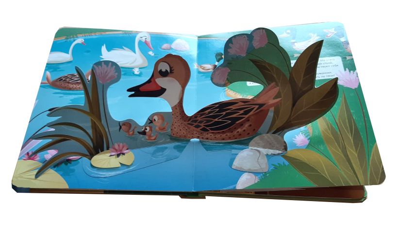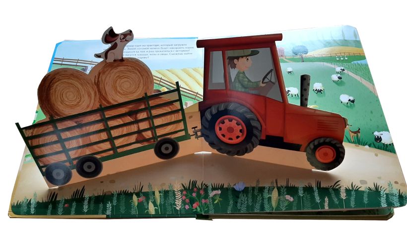 Это красочная и весёлая книга, посвящённая домашним животным. На каждой странице сюрприз — объёмный панорамный элемент, благодаря которому иллюстрация оживает.