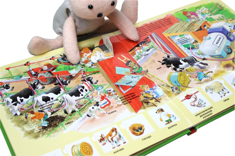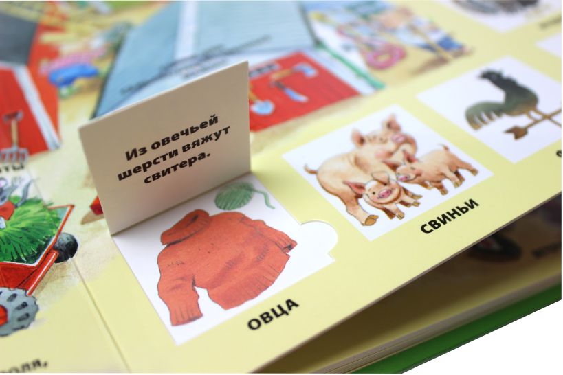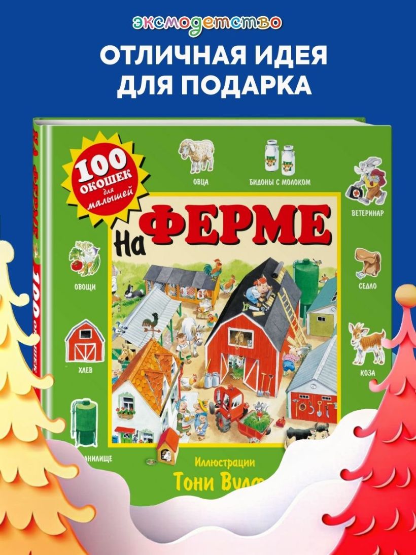 Эта книга наверняка станет одной из самых любимых у вашего малыша — ведь дети в возрасте 2-х—3-х лет обожают манипулировать предметами, и книга с окошками — это прекрасный объект для их маленьких пальчиков. Каждый раз, когда малыш своей крошечной ручкой открывает окошко в книге, он становится умнее, потому что совершает целенаправленное осознанное движение пальчиками, а развивающий импульс в этот момент поступает в мозг. А если малыш при этом рассматривает замечательные иллюстрации Тони Вульфа, если он вместе с мамой или бабушкой путешествует по страницам книги, знакомится с жителями сказочной фермы и узнаёт, как они работают на конюшне, в поле и в саду, то становится ясно, что такая книга непременно должна быть у каждого ребёнка. А толстый прочный картон вместе с безопасными закруглёнными концами страниц позволит играть с книгой очень долго.