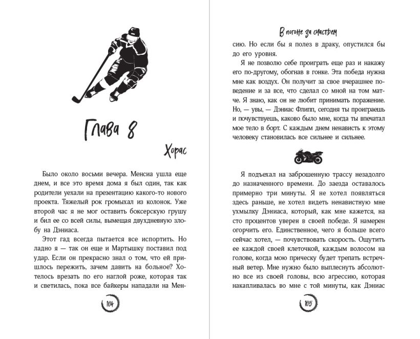 Герои: Менсиа — юная девушка, пережившая кошмар. Несломленная и желающая бороться за счастье. Хорас — спортсмен лишенный мечты о хоккее, но нашедший любовь.