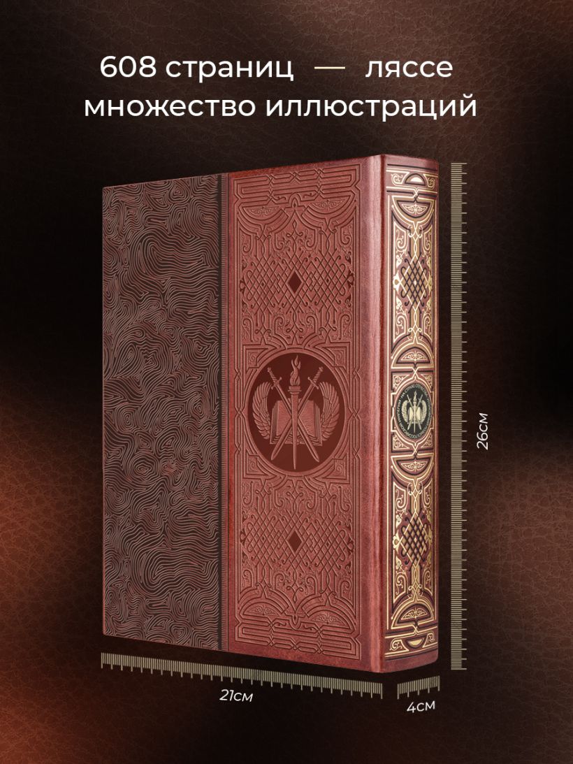Книга в коллекционном инкрустированном переплёте. Переплет изготовлен их двух видов натуральной кожи по технологии 19 века и украшен сплошным тончайшим тиснением, в полном соответствии с лучшими образцами переплетов европейских мастеров. В оформлении переплета использованы универсальные растительно-геометрические плетёные орнаменты, благодаря им книга будет отлично смотреться на любой книжной полке. Лента для закладывания страниц и каптал, скрепляющий верх и низ объемного тома, изготовлены из шелка. Бумага в книге легкая, матовая, что обеспечивает комфортное чтение даже длительное время, иллюстрации напечатаны на высокобелой мелованной бумаге. Обрез книги вызолочен вручную. Книга помещена в прочный футляр с магнитным замком и шелковой лентой, облегчающей вынимание. На крышке футляра тисненая золотом марка серии. К книге прилагается красочный сертификат, подтверждающий уникальность издания, он вложен в каждый экземпляр экземпляр и пронумерован вручную.