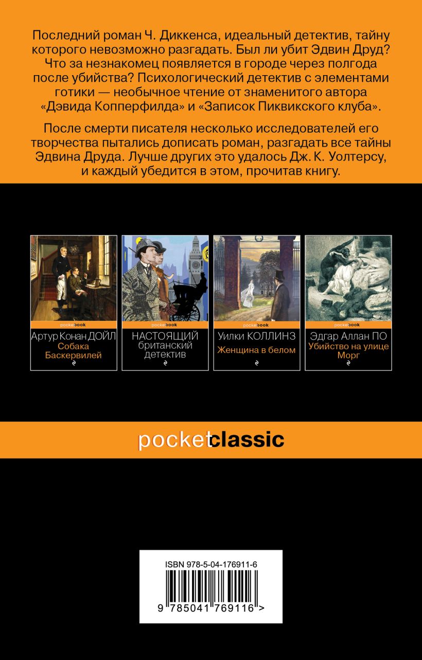 «Тайна Эдвина Друда». Главного героя романа убивают — об этом нам говорят исчезновение Эдвина Друда, факты, очевидцы последних событий, но при всем этом, можем ли мы точно утверждать, что он был убит? Если да, то кто его убил: дядюшка-наркоман Джаспер, студент с Цейлона Невил Ландлес? Что за незнакомец появляется в городе через полгода после убийства? Так много вопросов, на которые сложно найти однозначные ответы. Последний незавершенный роман Ч. Диккенса, идеальный психологический детектив с элементами готики, тайну которого невозможно разгадать.