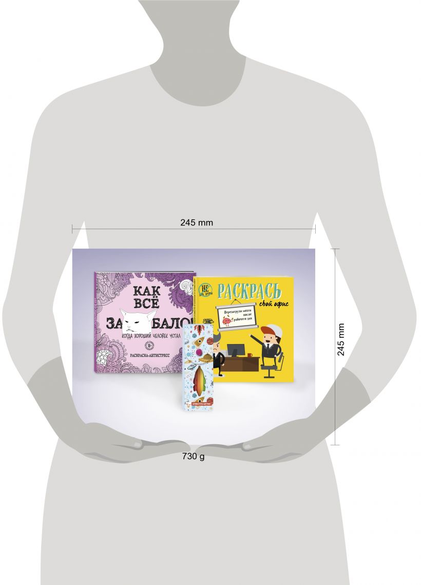 В этом подарочном наборе вы найдете две раскраски ("Раскрась свой офис" и "Как все задолбало! Раскраска-антистресс для взрослых") и набор из 12 фломастеров.