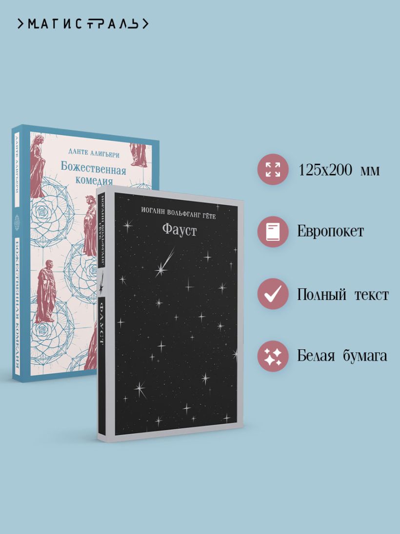 Два величайших памятника поэтической культуры в одном комплекте. «Божественная комедия» и «Фауст» — хрестоматийные произведение, обязательные к прочтению.