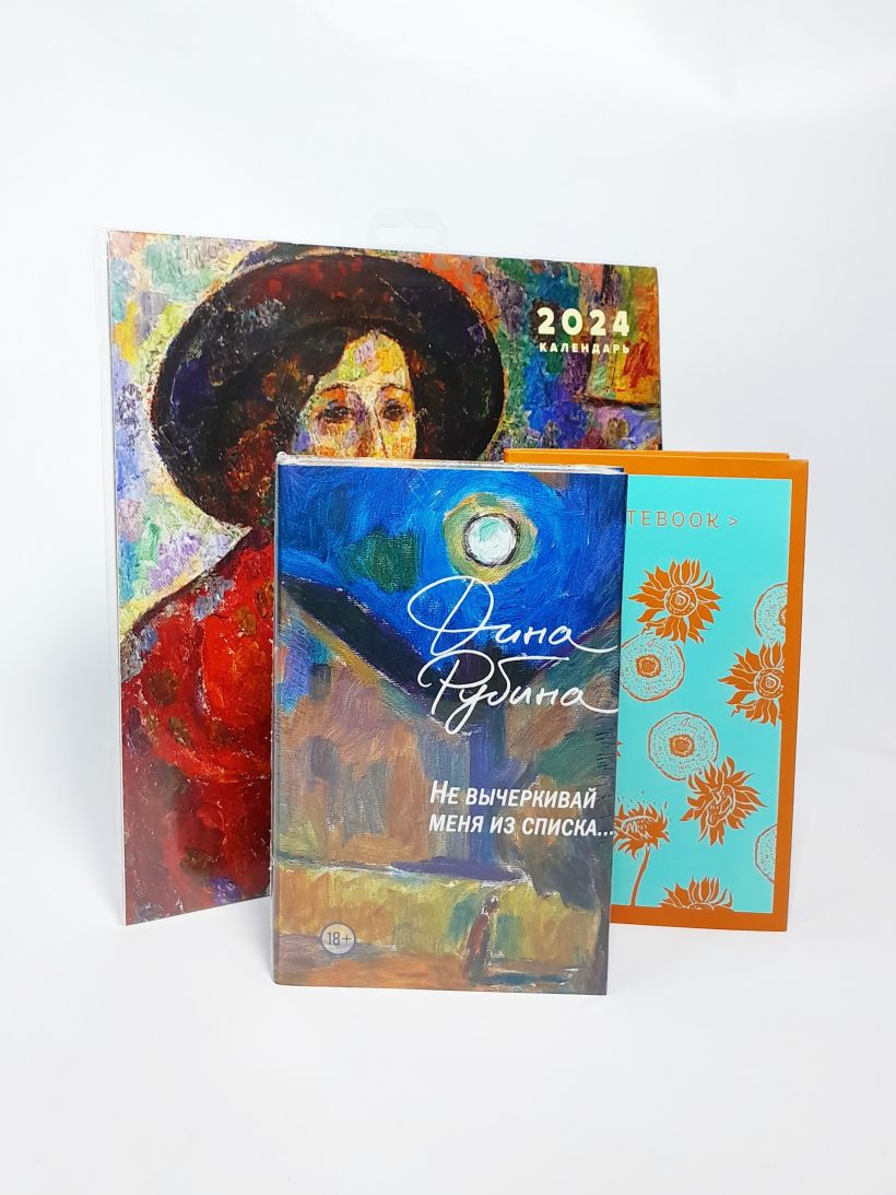 Набор: книга «Не вычеркивай меня из списка», календарь «Дина Рубина» и блокнот в точку «Подсолнухи» Ван Гог.