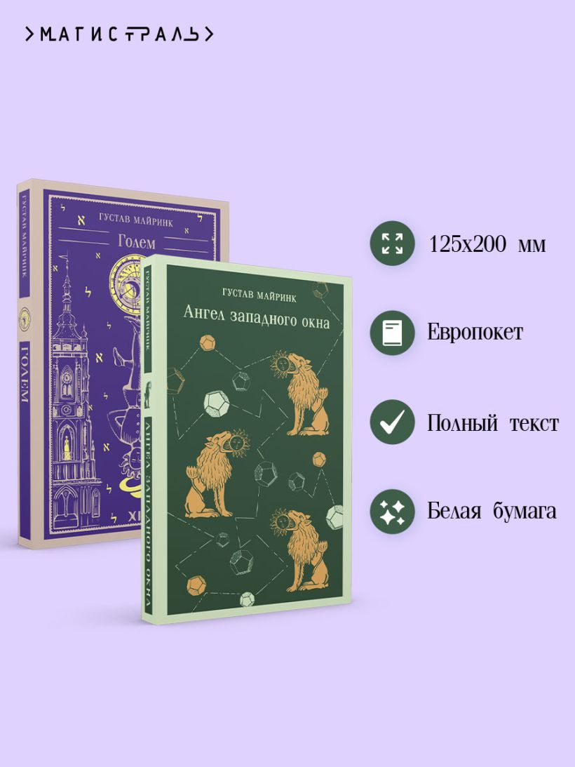 В комплект входят 2 романа Густава Майринка «Голем» и «Ангел западного окна».