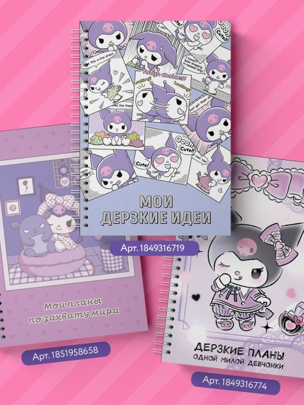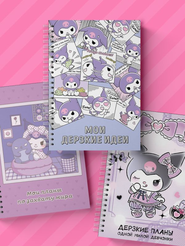 Дерзкий блокнот с Куроми — лучший помощник в делах для школьника и студента, который хочет подчеркнуть свою индивидуальность. Возьмите его с собой в путешествие, в парк, на лекцию. Пишите цели, планы, делайте творческие зарисовки, фиксируйте идеи, ловите музу, где бы вы ни находились. Вместе со злодейкой Куроми вы сможете все-все-все!