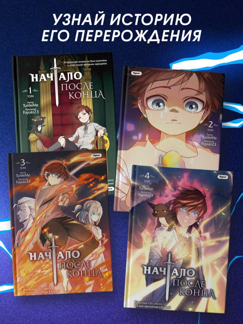Четвертый том популярной OEL-манги «Начало после конца» официально в России. Если вам нравится аниме "Solo Leveling" или «Магическая битва», комикс придется вам по душе. Артур мечтает стать авантюристом, а это значит, что скоро ему придется оставить семью и отправиться на миссию. После нескольких лет, проведенных в эльфийском королевстве, Артур наконец-то смог отправиться в Ксайрус и вернуться к своим родным! По семейной традиции, воссоединение отца и сына не может пройти без дружеского спарринга. Когда буря утихнет, наступит пора счастливых дней, знакомства с младшей сестрой и воссоединения с родителями. Но не все так радужно в большом городе — редкий мана-зверь Артура, Сильви, привлекла внимание не тех людей. И поскольку его близкие находятся в большой опасности, Артуру предстоит быть начеку как никогда раньше! Лучший веб-комикс в жанре экшен-фэнтези с более 37 млн просмотров и 2 млн лайков на популярном сайте Tapas. А по всему миру более 62 миллионов прочтений! На основе комикса вышел первый сезон под названием «Что будет делать сильнейший король в своей второй жизни?». Кому подойдёт: подросткам и взрослым, увлечённым аниме, фэнтези, мангой, веб-романами и играми в жанре RPG. Также подойдёт как мотивация для подростков, которые не читают обычные книги — но обожают комиксы, сериалы и игры. Комикс напечатан на мелованной бумаге, на обложке тиснение серебряной фольгой. OEL-манга, азиатское фэнтези, ЛитРПГ, реинкарнация, маньхуа и манхвы