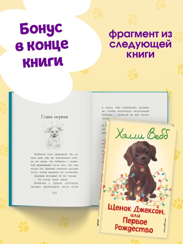 Трогательная история о дружбе девочки и щенка — для мальчиков и девочек 6—9 лет! Ария с нетерпением ждёт Рождества, ведь она впервые встретит праздник вместе со своим щенком Джексоном! Но когда в доме собираются многочисленные родственники, всё идёт не по плану. Щенок всё чаще попадает в неприятности, и кажется, что праздник испорчен… Сумеет ли Ария защитить своего любимца, вернуть рождественское настроение и доказать, что чудо возможно, если рядом тот, кого любишь всем сердцем? Увлекательный рассказ о животных поможет ребёнку полюбить книги, научиться читать с удовольствием и навсегда запомнить первую любимую книжку про щенка! Во всех книгах серии законченный сюжет, поэтому их можно читать в любом порядке. Книга с крупными буквами, на белой бумаге, внутри красивые чёрно-белые иллюстрации художницы Софи Вильямс, которые позволят детям переключать внимание, не нагружая глаза. Подходит для первого самостоятельного чтения. Идеальный подарок ребёнку на Новый год или Рождество! Холли Вебб — писательница, популярная во всём мире, но особенно её полюбили в России, что подтверждают многомиллионные тиражи. Читайте другие книги в серии «Добрые истории о зверятах. Мировой бестселлер», а также серии «Котята в музее» и «Мейзи Хитчинс. Приключения девочки-детектива»!