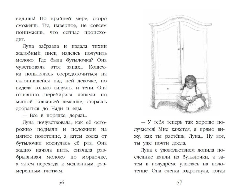 Книга с крупными буквами, на белой бумаге, внутри красивые чёрно-белые иллюстрации художницы Софи Вильямс, которые позволят детям переключать внимание, не нагружая глаза. Подходит для первого самостоятельного чтения.