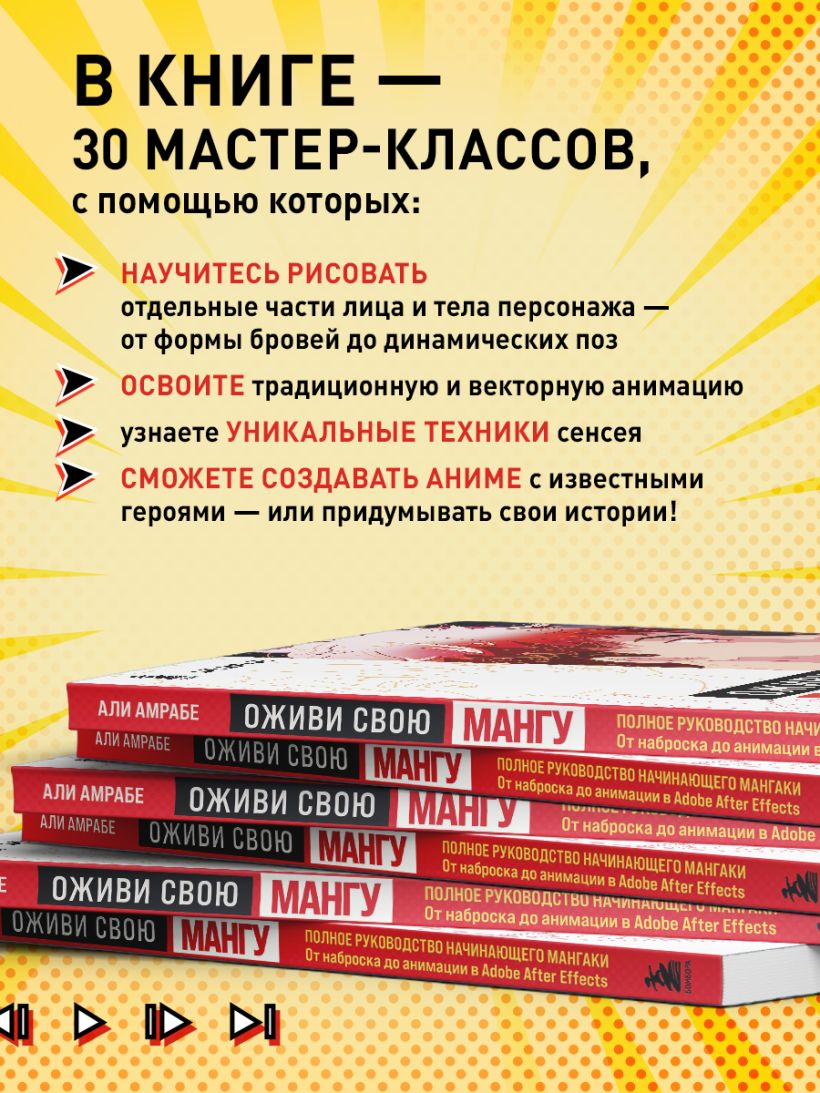 Постепенно ты откроешь для себя секреты создания оригинальных и запоминающихся персонажей, научишься выстраивать динамичные позы и подбирать удачные ракурсы, а также работать в программе Adobe After Effects. Внутри ты найдешь более 30 мастер-классов по рисованию отдельных частей лица и туловища героев: глаза, волосы, руки, ноги, бюст и многое другое!