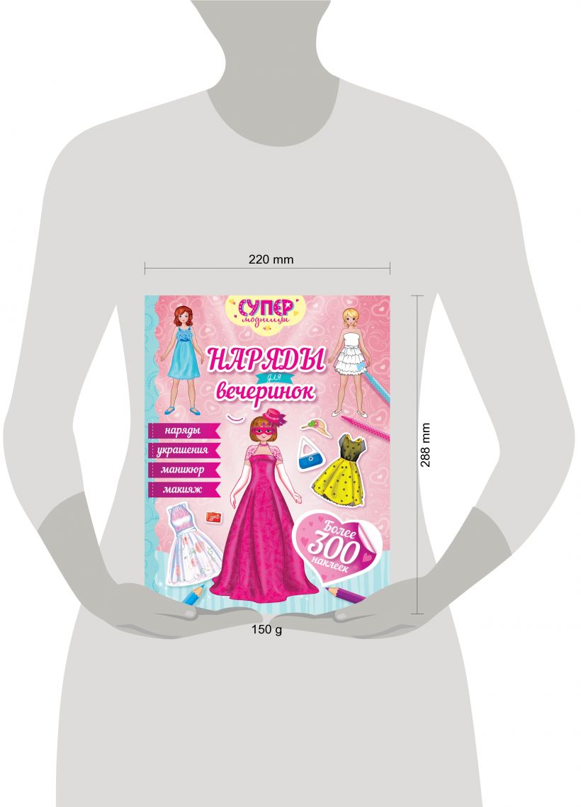 Эта очаровательная книга станет замечательным подарком для любой девчонки. На каждой странице книги модели – королевы вечеринок – и более 300 наклеек. Яркие туфли и сумочки, нарядные платья и шарфики, красивые шляпки и бусы, модный нейл-арт, кольца, серьги и другие стильные штучки можно найти на наклейках. А еще девчонкам предстоит выступить в роли дизайнеров, по-своему раскрашивая наряды и создавая модный макияж.