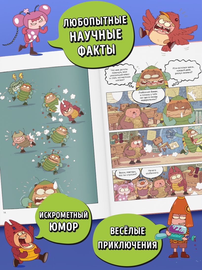 Долгожданное продолжение серии познавательных комиксов о насекомых! Герои комикса — совсем как настоящие дети: ходят в школу, дружат, попадают в переделки, но… все они — НАСЕКОМЫЕ!