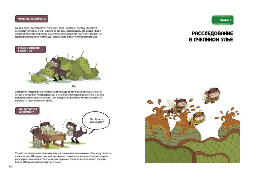 Присоединяйся к приключениям крутых букашек, читай о них смешные истории в формате красочного комикса — и одновременно узнавай самые любопытные научные факты о жуках, бабочках и других насекомых! В конце каждой главы этой веселой энциклопедии про насекомых тебя ждут познавательные страницы о жизни и устройстве этих удивительных существ!