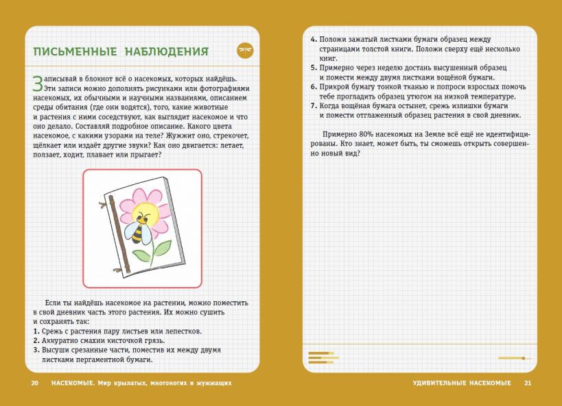 Также его ждут увлекательные опыты, которые можно провести в безопасных условиях: собрать досье на насекомых в округе, построить собственный маленький сад для насекомых, и многое другое!