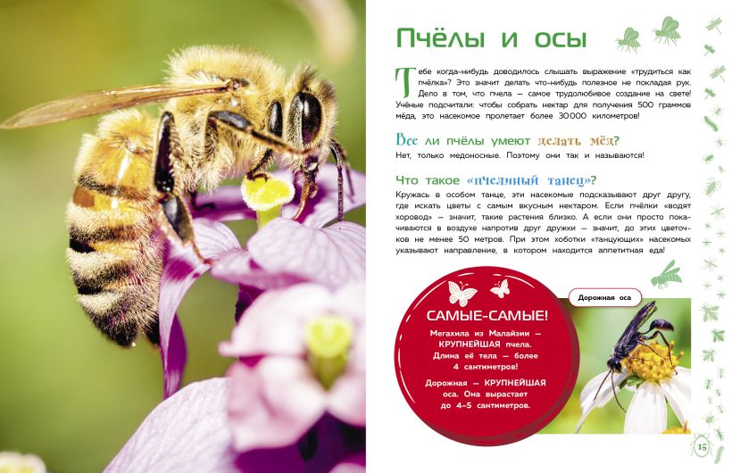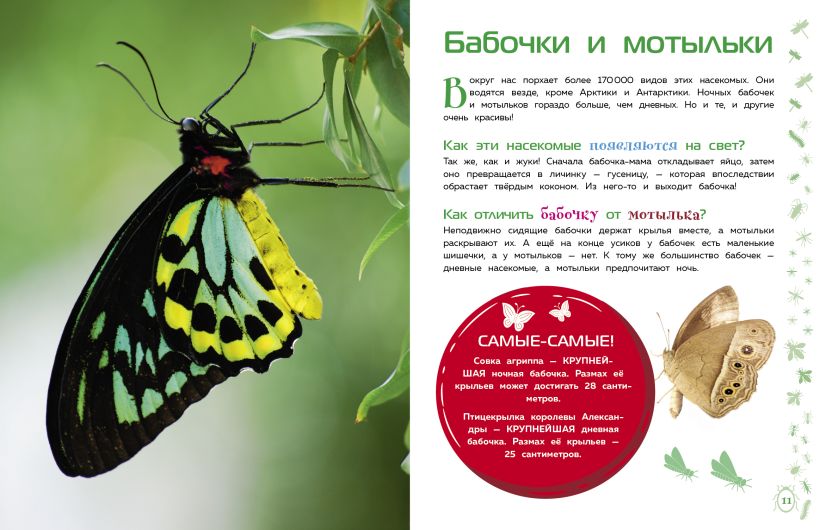 Внимание! Если ты хочешь узнать всё самое захватывающее о насекомых, то скорее открывай эту книгу! Будет интересно! Ты прочитаешь о том, зачем скорпионам жала, почему гусеницы постоянно едят, чем полезны божьи коровки, как муравьи наводят порядок в своих жилищах. А ещё тебя ждут большие, яркие и красочные фотографии. Добро пожаловать в мир животных!